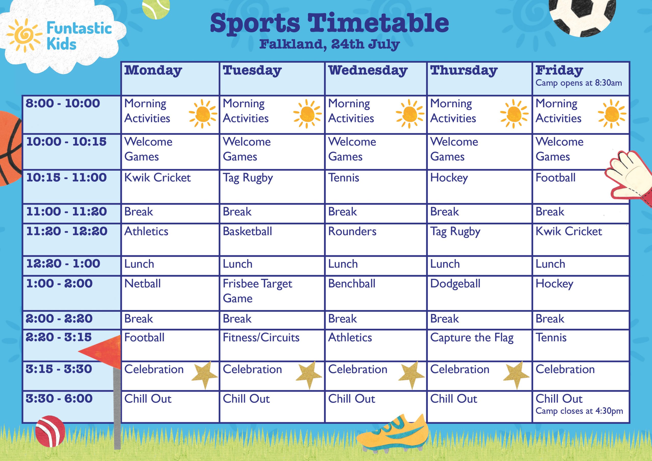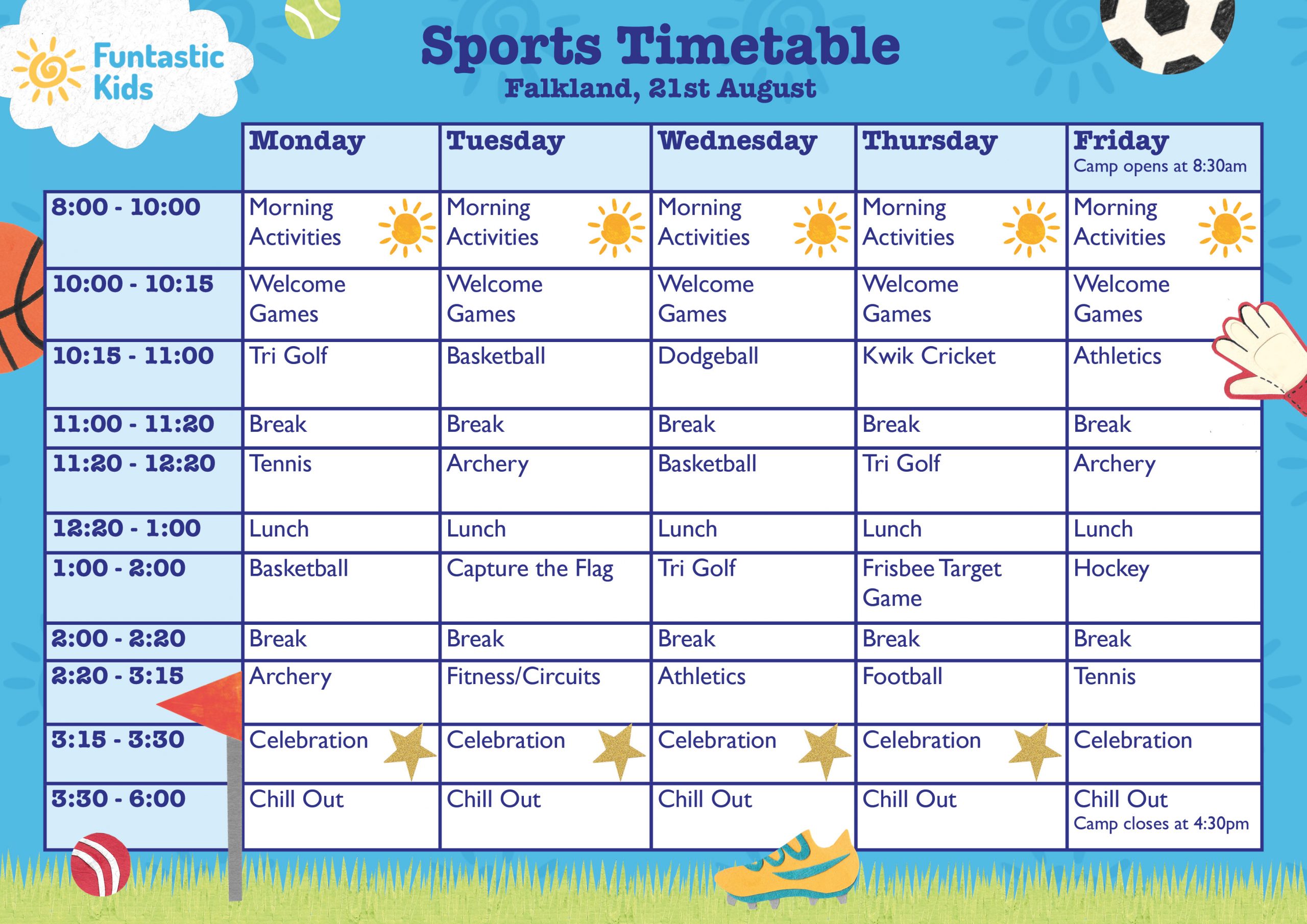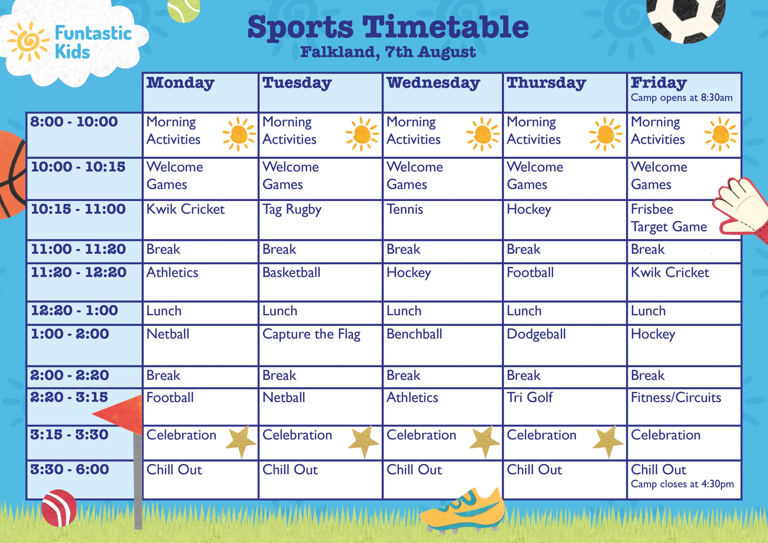 Please note: Our Falkland Holiday Camp will be open 8am – 6pm Monday to Thursday, and 8:30am – 4:30pm on Fridays.